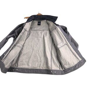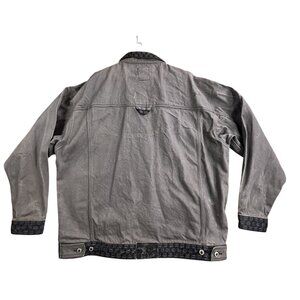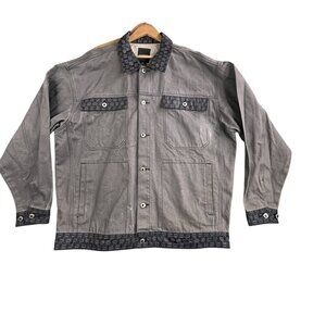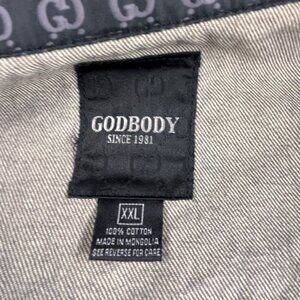 Godbody Jacket Men's 2XL Gray Denim Button Up Monogram Trim Hip Hop Streetwear