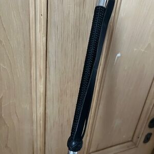 26.5 in/87 cm riding crop, with black leather details. Made in England.