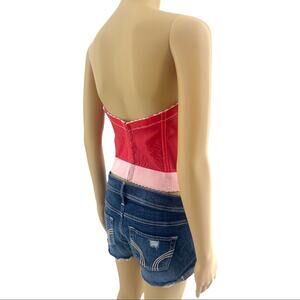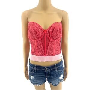Goddess (36B) American VINTAGE 90s Red and Pink Hand Dyed Floral Lace Bustier
