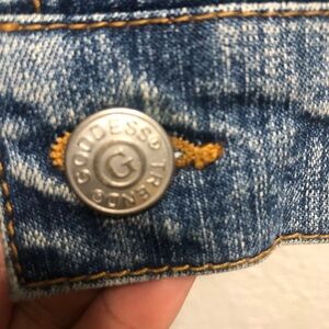 Chic denim jacket with a standout silver button. Ideal for casual wear.