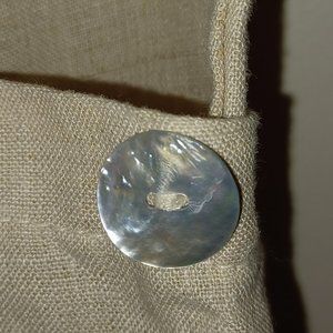 Goddess Gear pants are made of natural organic fiber. They have a pocket on the legs like cargo pants, with a shell button. Size large waist is about 13 inches wide.