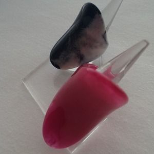 A Fuchsia and a Two Toned Creme and Midnight Black Rings, very stylish and different!