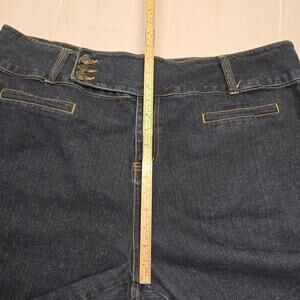 Goddess Womens Size 24 Denim Shorts Bermuda Dark Wash Stretch Beach Vacation. Front pockets are decorational. Back pockets are functional. In good, pre-owned condition with no noted rips, tears or stains. Measurements in description and in pictures with ruler. Please see pictures as they are considered part of the description.