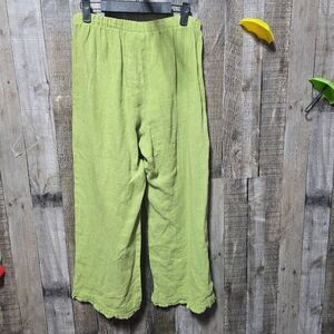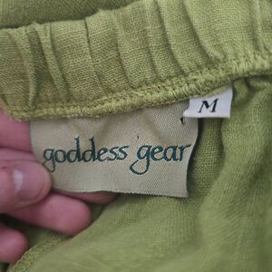 Goddess Gear Green Linen Cropped Flare Pants
