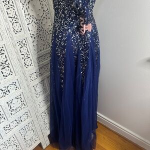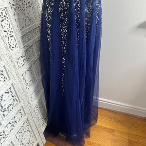 Goddiva London Navy Blue Off Shoulder Sequin Fairycore Formal Event Prom Gown Dress Sz Medium