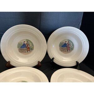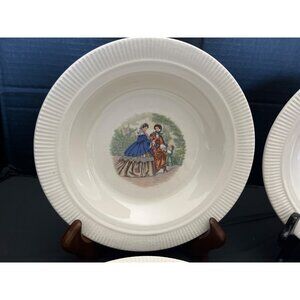 Elegant set of four rim soup bowls featuring Victorian ladies. Crafted by Salem China Co, these Godey Prints bowls are perfect for collectors or those looking to add vintage charm to their dining experience. Made in the USA, these bowls blend history with functionality, enhancing any table setting.