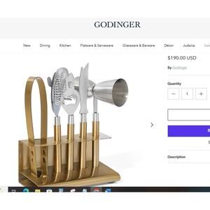 Godinger Aztez Gold Bar Tools Set Drink Mixing Ice Tongs