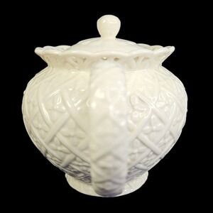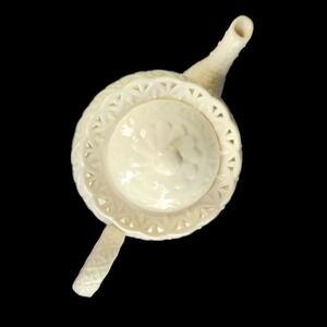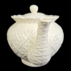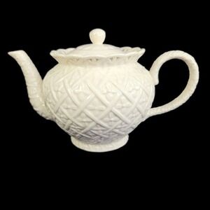 Godinger Cream Embossed Lattice Teapot With Lid Pierced Lace Rim Porcelain READ