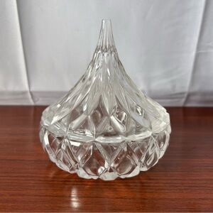 Godinger Crystal Hershey Kiss shaped candy dish. Would be a great dish for candy kisses, trinkets or jewelry. Consists of 2 pieces, the bottom dish and matching lid. No chips, cracks or damage.