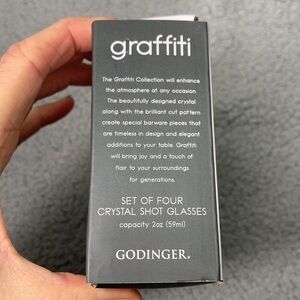 Godinger Graffiti Set of Four Crystal Shot Glasses - Clear, 2oz NIB