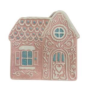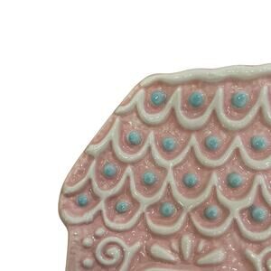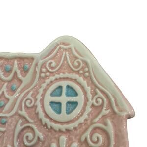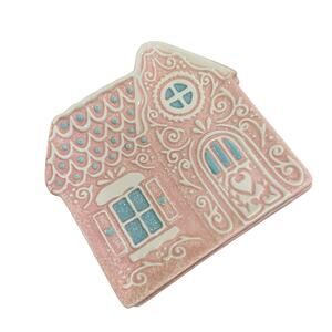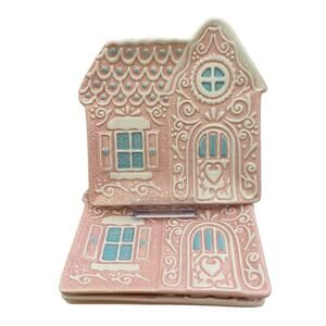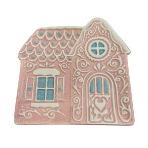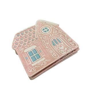 Godinger Pastel Pink Gingerbread House 6in Ceramic Appetizer Plates New