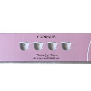 Add a touch of charm to your coffee routine with this GODINGER Pink Bow Espresso Mug Set. This set of four ceramic espresso mugs features a delicate pink bow design on a crisp white background. Perfect for espresso lovers, these mugs are microwave and dishwasher-safe for easy use and cleaning. Whether for your home, a gift, or a chic café aesthetic, these brand-new mugs bring elegance to every sip.