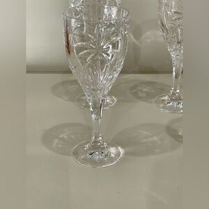 Design: Featuring a palm tree pattern, these clear, cut-glass goblets add an elegant touch to any table setting.