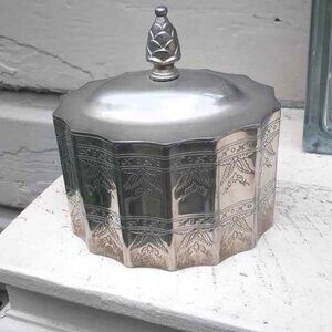 Godinger Silver Plated Etched Scalloped Pineapple Finial Lidded Trinket Box
