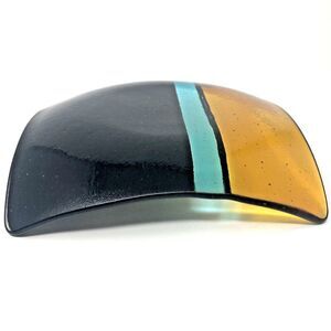 Colorful Fused Studio Art Glass Dish Gods Eye Abstract Turquoise Black Amber Signed Artist G. King