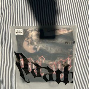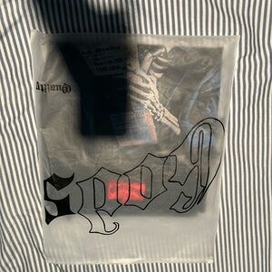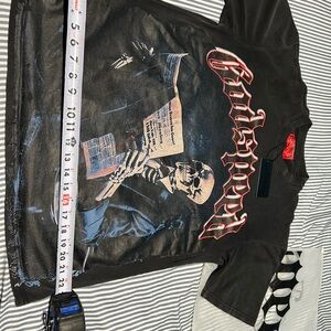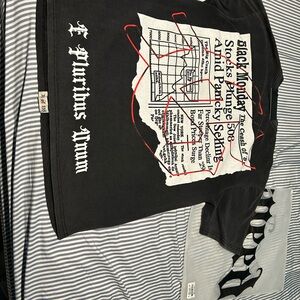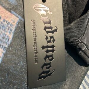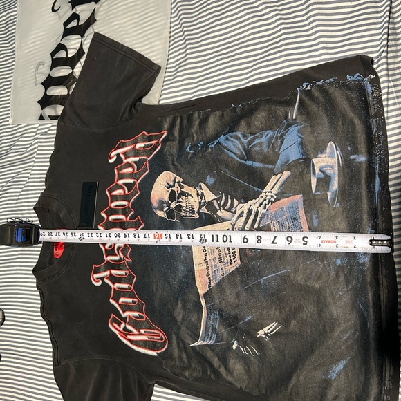 A black Godspeed T-shirt, size medium, and his perfect warrior wardrobe cold Godspeed black 29 inches in height 23 inches in width