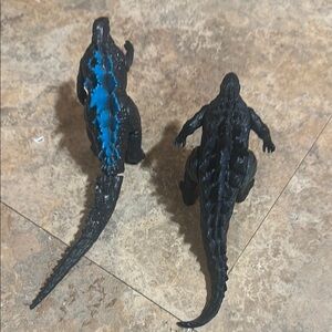Set of two dinosaur figures in black and blue. Perfect for collectors or play.