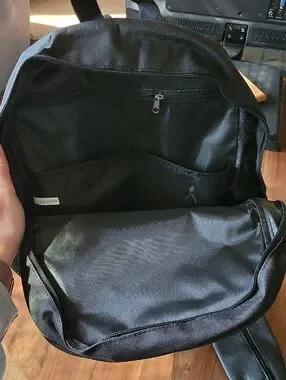 The main pocket has 2 interior pockets. There is also a mesh side pocket on either side of the bag.