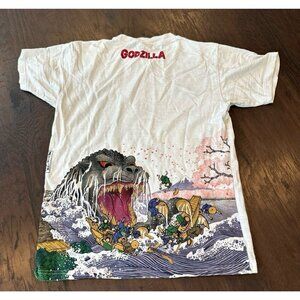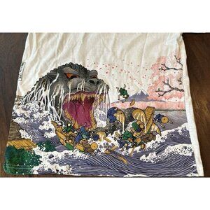 Godzilla T-Shirt Japanese Art Cherry Blossom Mt. Fuji Hokusai White size medium pit to pit is 17 inches length is 24 inches