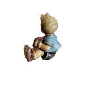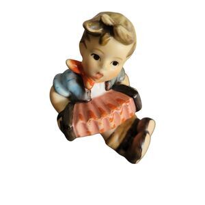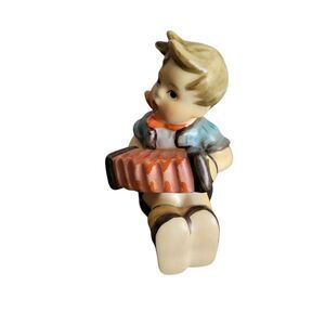 Charming Goebel figurine of a boy holding a Accordion. Features a blue shirt and brown shoes. Perfect for home decor. 3"