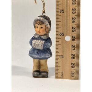 Goebel Hummel 1999 Christmas Ornament Girl in Blue Coat & Muff Figurine 2.75"