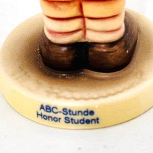Goebel Hummel "Honor Student" #2097B. This cute Hummel was released to the U.S. market in 2000 to club members as a gift for their club renewal. Modeled by master sculptor Helmut Fischer in 1999. On the bottom is the incised 1999 copyright date. It has the club exclusive backstamp for 2000/2001. It was eventually offered for sale to nonmembers.
