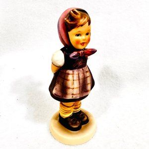 Hummel 258, "Which Hand?' A young girl with both hands behind her back. This Hummel has a donut shaped base. TMK5 mark. Height is approx. 5.25 inches.