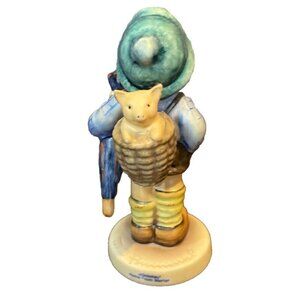 This charming Goebel Hummel figurine, "Home From Market," features a young boy with a pig, capturing rustic farm life. This collectible piece is made in Germany and is perfect for Hummel enthusiasts or as a unique home decor item.