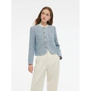 Goelia Tweed Round Neck Jacket Blue White Jacquard