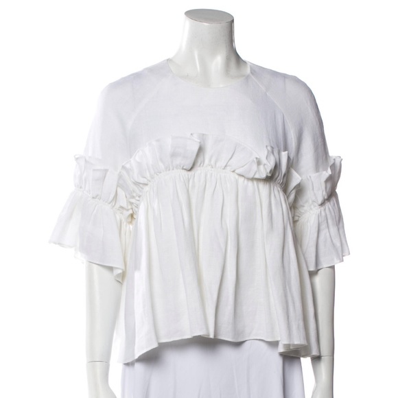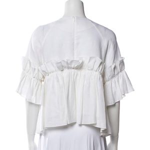 Beautiful white Goen J linen top with ruffles. Never worn. Size medium, 6. True to size.