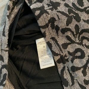 Your confidence and peppy attitude will turn heads when you step into the party wearing this charcoal-grey sheath dress! A black, organic pattern adorns the 3/4-sleeve silhouette of this soft-knit frock, providing eye-catching detail to match your spectacular smile.
