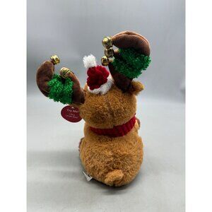 The animated reindeer plush toy brings festive cheer with its interactive features. Adorned with bells and a Santa hat, it adds a playful touch to holiday decorations or gift-giving. Its plush exterior is soft and inviting, making it suitable for children or as a cozy decorative piece.