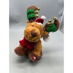 Goffa Animated Reindeer Plush Toy Bells Santa Hat Christmas jingle bells READ