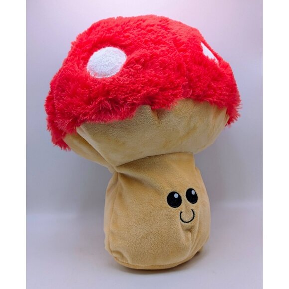 Goffa Smiling Red Spotted Cap Mushroom 11" Plush Stuffed Toy Happy Pillow Large CLEAN