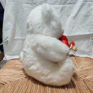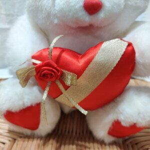 Goffa White Teddy Bear Plush 9" Red Gold Satin Heart Bow Valentine Gift Cute