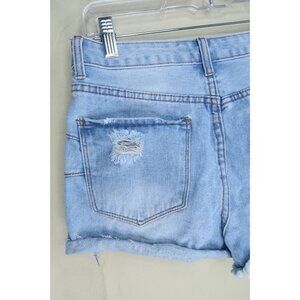 Very distressed jean shorts. No stains or odors. Please review all photos to assess the condition of this preowned garment. Feel free to reach out if you have any questions.