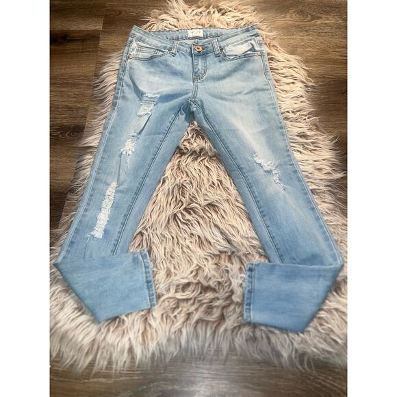Gogo women’s distressed blue jeans Size 3 Used good condition Measurements are shown in pictures