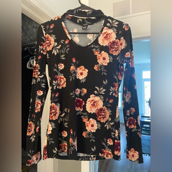 Rose and blocked top with long sleeves, stretchy material with a strap at the neck. Super soft and comfy.
