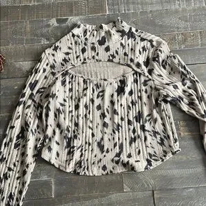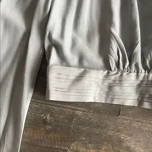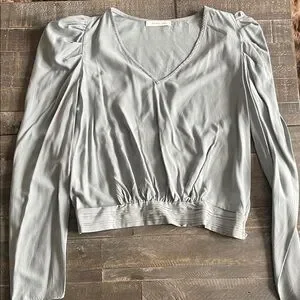 1. First one is slightly cropped with a cinched waist and slight leave puffy sleeves. The fabric is super thin and great for going out all year.