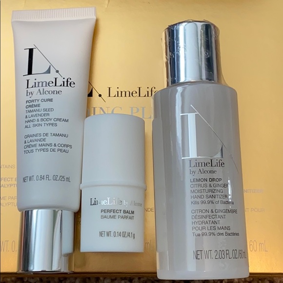 This new kit contains: Forty Cure Cream travel size Hand Sanitizer - Lemon Drop 2oz. Perfect Lip Balm - mint