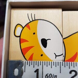 EUC GOKI wood tile puzzles, each set of 4 tiles makes a picture, the tiles do not attach to each other, they are similar to scrabble tiles just thinner and bigger, there are no defects, I see.