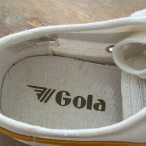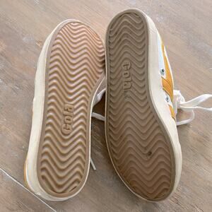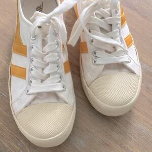 Details: Size 6, Sporty stripes race up the sides and wrap around the heel of a low-top sneaker styled with diamond texturing on the cupsole and cap toe, some wear