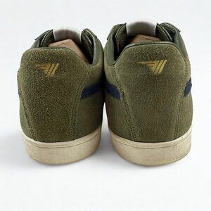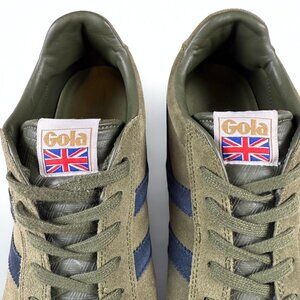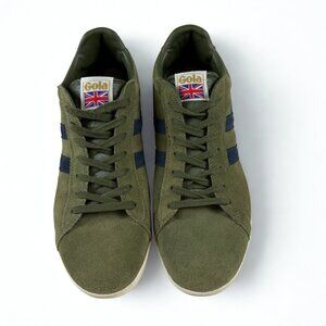 Gola Equipe Mens Size 13 Sneakers Olive Green Suede Retro Trainers UK Flag Logo