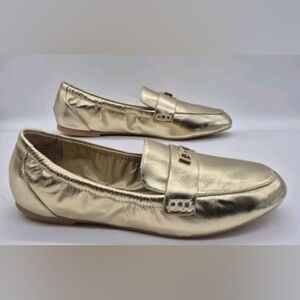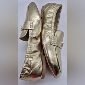 Gold 10 Leather Ballet Loafer Flats Stylish Holiday Car Shoe New