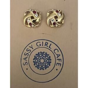 These beautiful gold stud earrings from Sassy Girls feature a love knot design with red and clear crystal accents. The hypoallergenic posts ensure comfortable wear for anyone, and the earrings measure 1/2 inch in length. With a stylish and versatile design, these earrings can be worn for any occasion. The elegant knot shape and sparkling crystals make them a perfect addition to any jewelry collection.