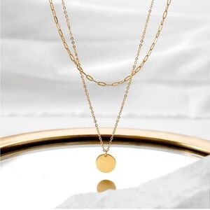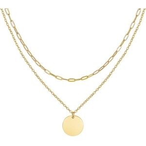 Gold 14k Gold Plated 2pc Chain Disc Necklace Set