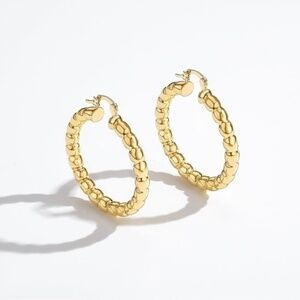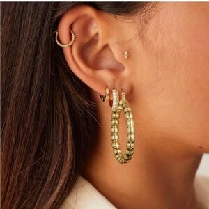 Gold 14k Gold Plated Beaded Huggie Hoop Earrings
