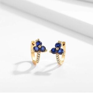 Gold 14k Gold Plated Blue Cubic Zirconia Huggie Hoop Earrings