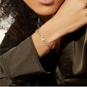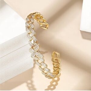 Gold 14k Gold Plated Cubic Zirconia Butterfly Cuff Bracelet