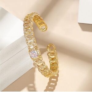 Gold 14k Gold Plated Cubic Zirconia Cuff Bracelet